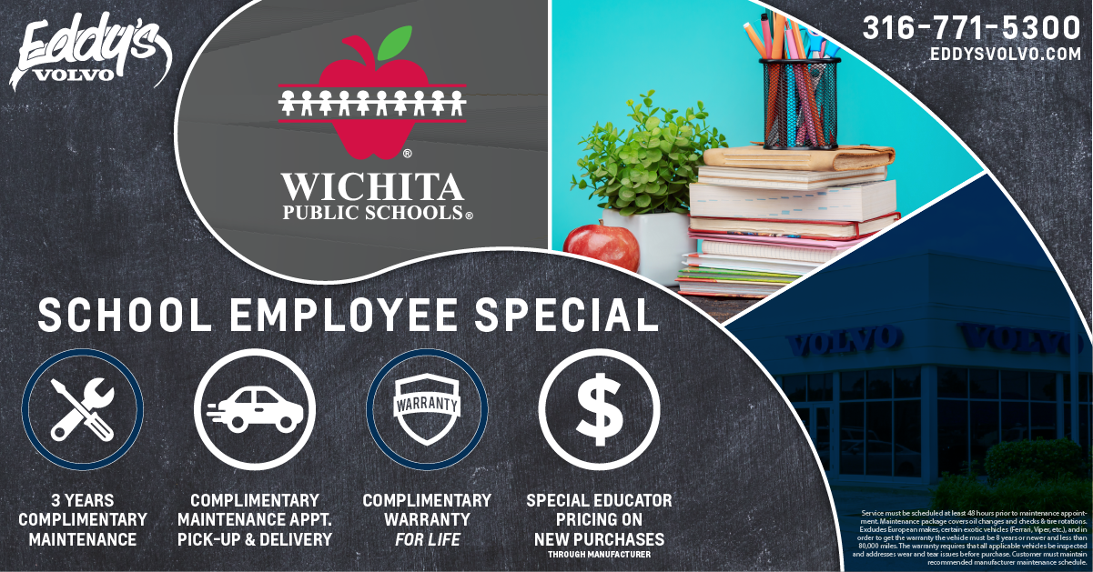 Hello School Employees! No matter what your position is at your school, we are here to thank you from the bottom of our hearts for everything you do in the classroom. We couldn't think of a more deserving group than our local teachers and school employees to receive a special discount from our dealership. Please note that this offer is not limited to just Wichita school employees, but also our surrounding cities like Winfield, Wellington, Derby, Hutchinson, Garden City, Emporia, and more!